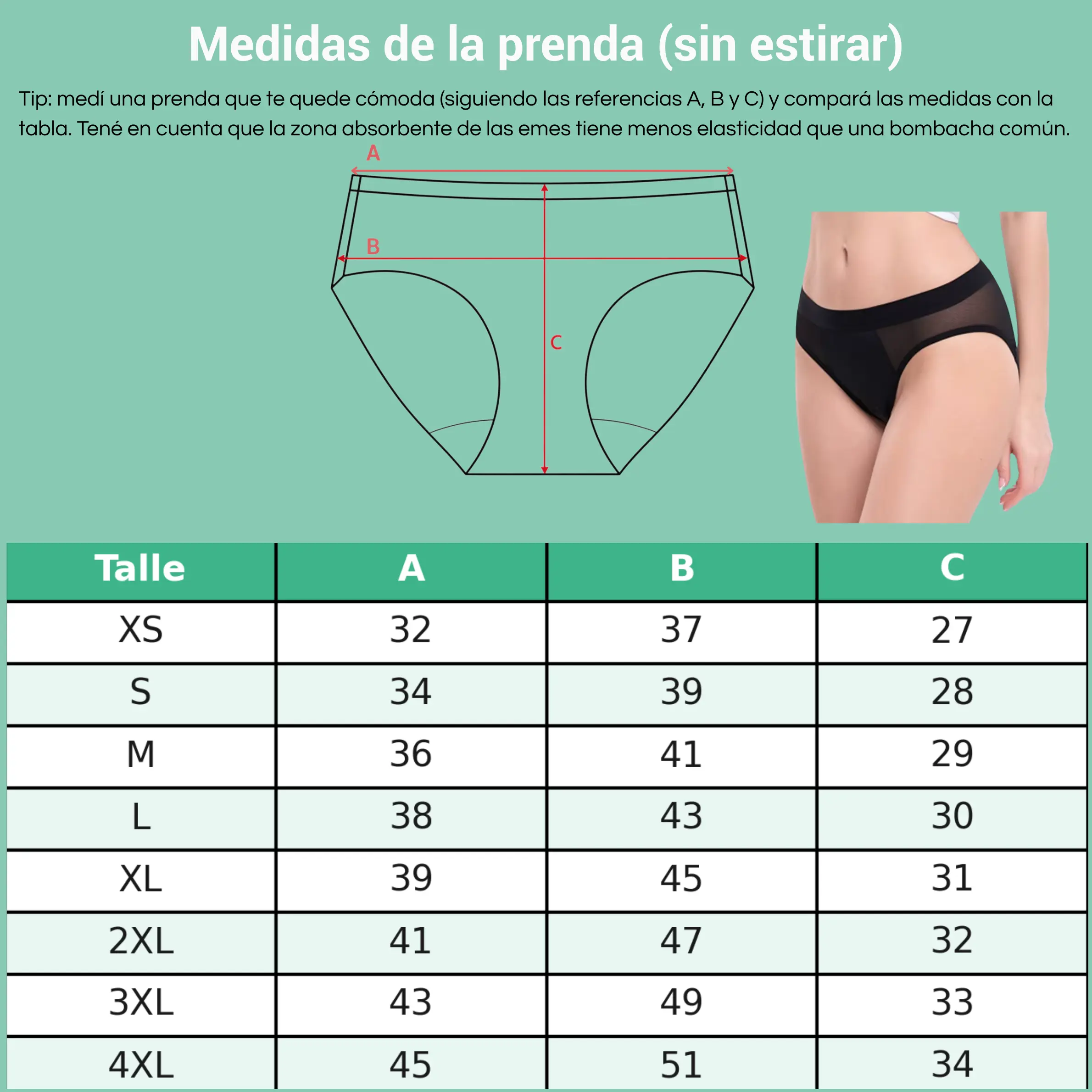 - Si buscás más comodidad en la zona de cobertura, optá por el talle más grande