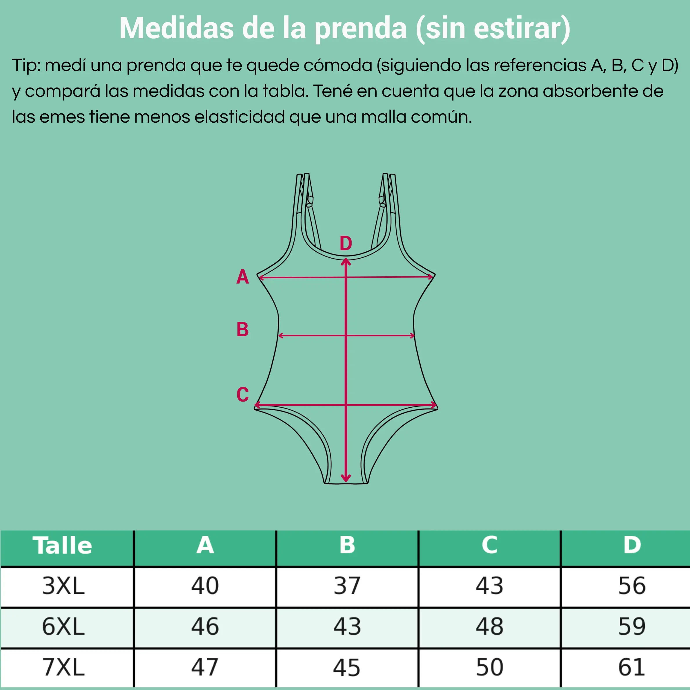 Disfrutá del agua con total tranquilidad con nuestra malla menstrual absorbente entera, diseñadas para brindar protección durante la menstruación, fugas de orina y posparto. Su absorción de hasta 4 unidades de protección regular y sus 4 capas de alto rendimiento garantizan comodidad y seguridad sin necesidad de productos adicionales.