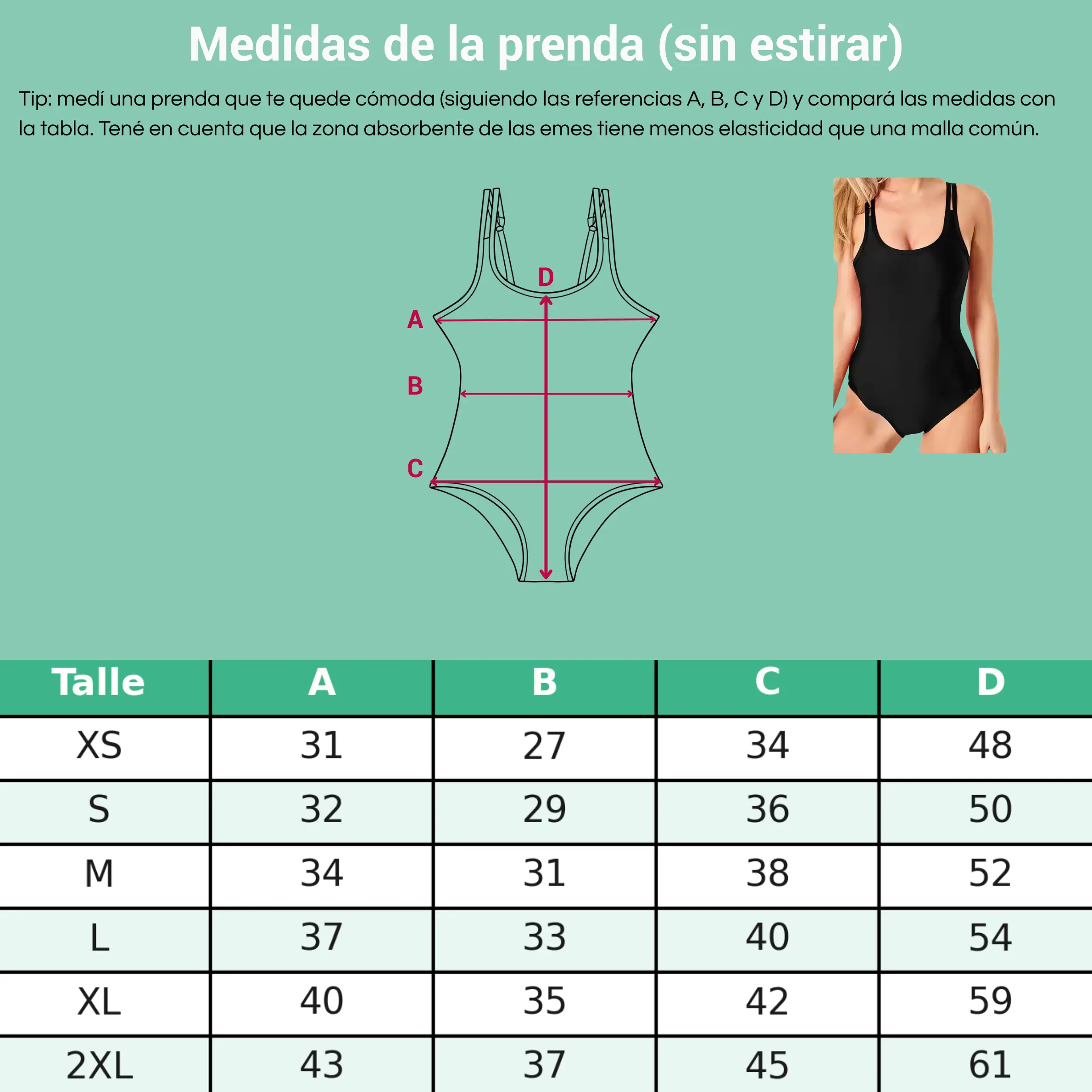 El traje de baño menstrual reutilizable de emes sirve para menstruación, pérdidas de orina o posparto. Si querés meterte al agua sin pensar en imprevistos, es por acá.